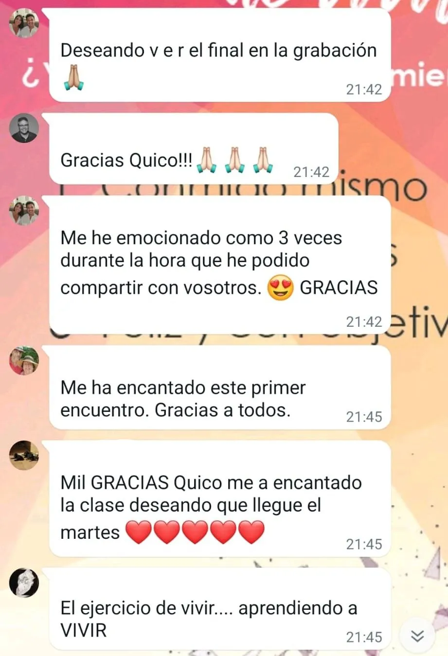 Sesión grupal con Quico (y con personas afines a ti) de preguntas y respuestas de 1h. Online, todas las semanas durante 1 año.